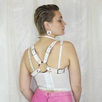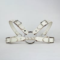 The classic bulldog harness is given a twist for our Valentine's Day Collection. It now features a string of pearl beads across the chest. This limited edition piece is made-to-measure. Please allow 3-6 weeks for production.