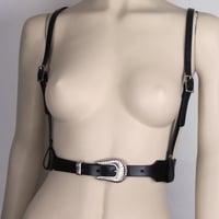 This multi-way harness can be worn many different ways! Featuring a two-piece dead-stock buckle in nickel or brass.